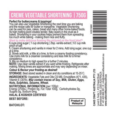 Snow Creme by Cake Craft is your go-to vegetable shortening for creating bright white buttercream, vibrant icing colours, and stable frosting in warm weather. Made from vegetable oils, it’s dairy-free, gluten-free, and Halal certified—perfect for allergy-friendly and vegan baking.