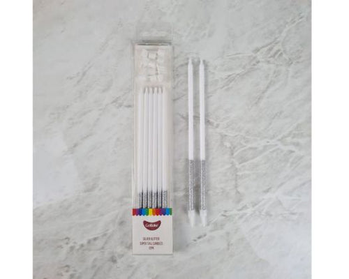 Candles | Super Tall | 18cm | Silver Glitter | Pack of 12