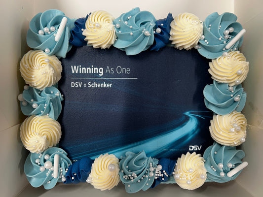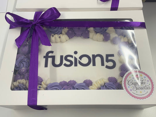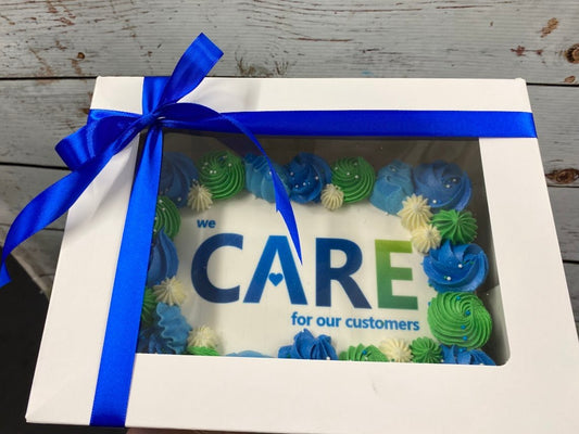 Looking for a unique and delicious way to celebrate your team, promote your brand, or say thanks to clients? Our Corporate Cake in a Box is a rich chocolate cake topped with buttercream and finished with a custom edible image of your choice โ logos, photos, messages, you name it!