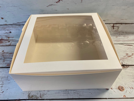 Versatile and professional, our 10" White Window Cake Box is perfect for displaying and transporting cakes or up to 9 cupcakes with the optional insert. Made from high-quality cardstock, this sturdy box features a clear window to beautifully showcase your baked goods.