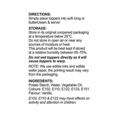 Made from a mix of potato starch and vegetable oil, these toppers are fully edible and safe to use.