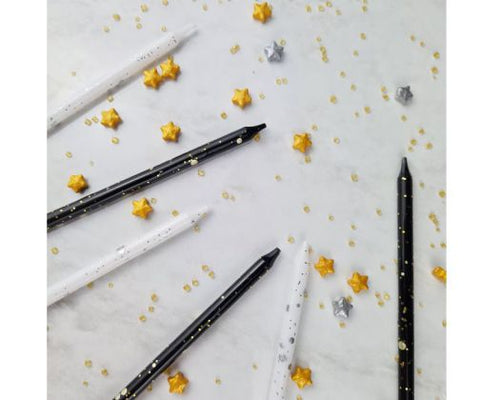 Add serious wow-factor to your cake with these super tall statement candles! At a striking 18cm high, each candle features a modern white finish with a stylish silver splatter effect — perfect for elegant birthdays, milestone celebrations, or sleek monochrome themes.