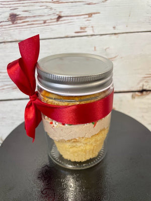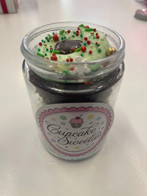 Each jar equals two cupcakes layered with spiced cinnamon & ginger buttercream, finished with Christmas sprinkles and a festive topper.
