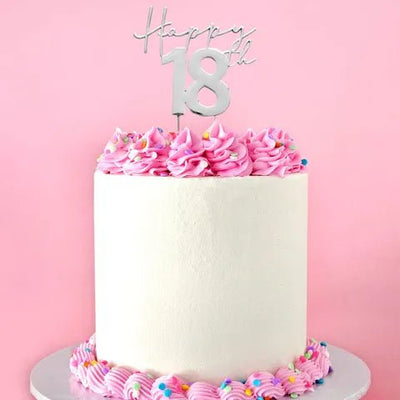 Cake Topper | Silver Metal Cake Topper | Happy 18th