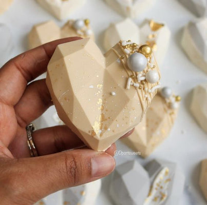 Make stunning geometric heart shapes with ease using this flexible silicone mould – perfect for chocolate, fondant, or cake toppers!