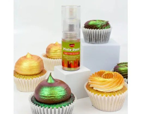 Add a beautiful shimmer to your baking with this stunning two-tone edible pixie dust from GoBake. The gorgeous Copper & Sage blend catches the light beautifully, creating a unique colour-shifting sparkle that adds elegance and wow-factor to cakes, cupcakes and desserts.