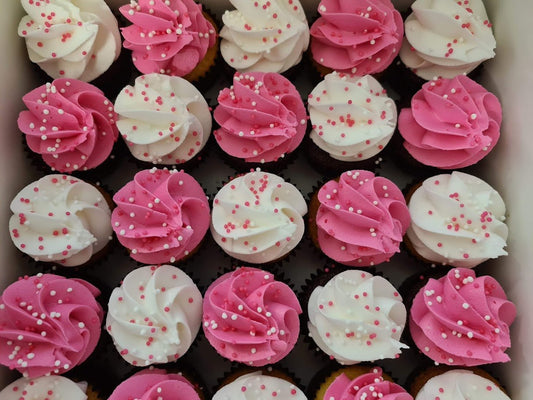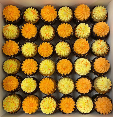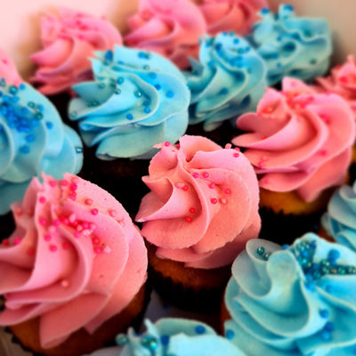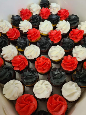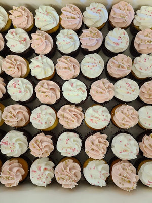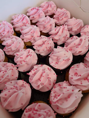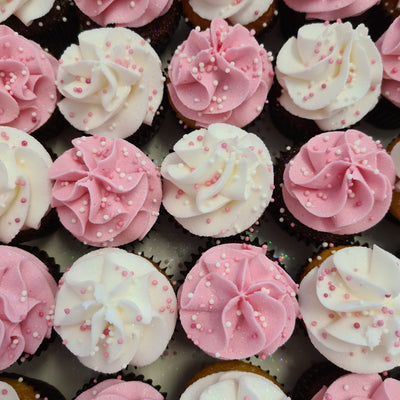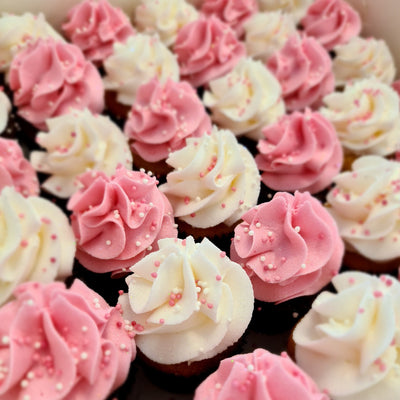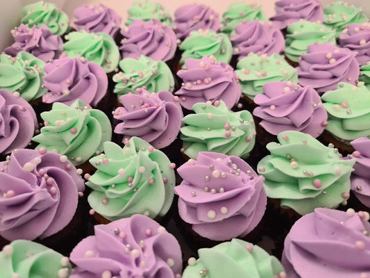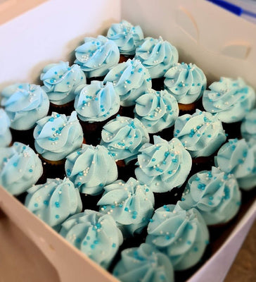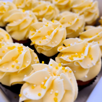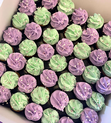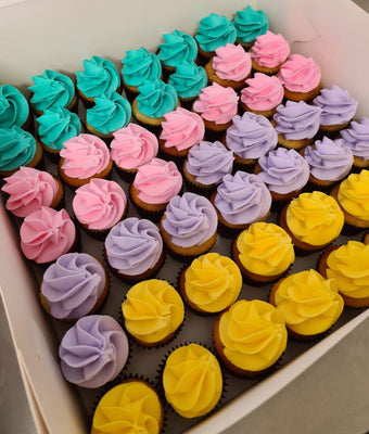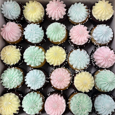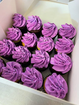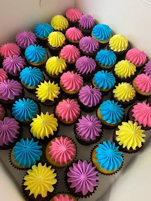 All cupcakes are topped with coloured buttercream icing in your choice of colour.