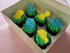 Each cupcake is topped with colourful buttercream and a mix of dinosaur-themed decorations. Flavours include a delicious mix of our standard range: Chocolate, Vanilla, Lemon Yoghurt, and Red Velvet.