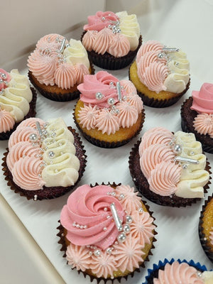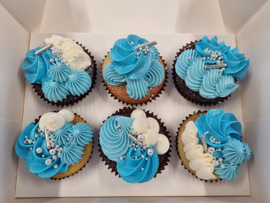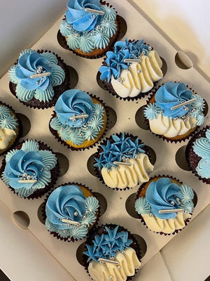 Treat someone special (or yourself!) to a stunning box of our elegant ‘fancy’ cupcakes. These beautiful boxes include a mix of our standard cupcake flavours, each decorated in a soft, sophisticated style.