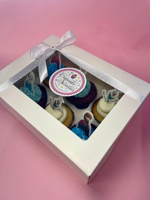 A beautiful gift box of Frozen-themed cupcakes, perfect for birthdays, celebrations, or any little Elsa or Anna fan!