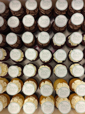 A 25-pack of mini cupcakes can have up to 2 different images & 2 colours of buttercream.