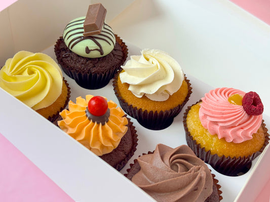 Each box includes a delicious blend of our Standard and Premium cupcakes, beautifully presented and guaranteed to delight.