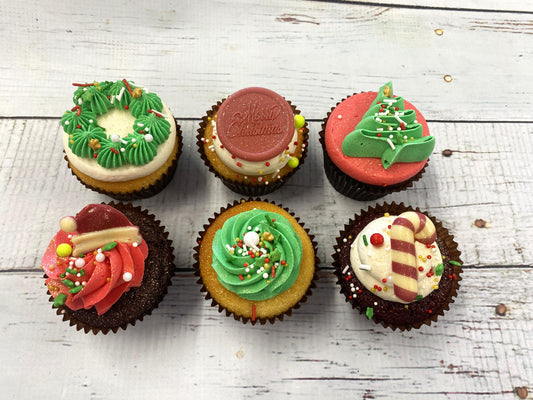 • 🧁 A selection of freshly baked cupcakes in classic festive flavours