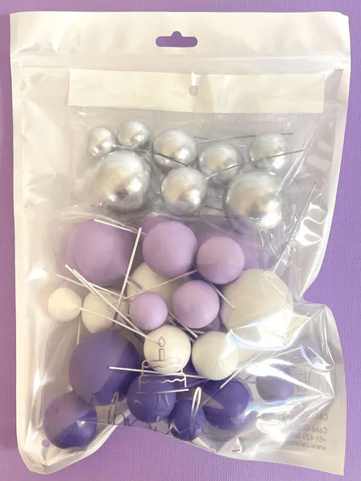 Give your cakes and desserts a stunning, modern finish with this 32-piece Foam Ball Topper Set in gorgeous shades of purple, lilac, white, and silver. These lightweight decorative balls add instant height, dimension, and sparkle to your bakes — perfect for birthdays, baby showers, weddings, or any celebration.