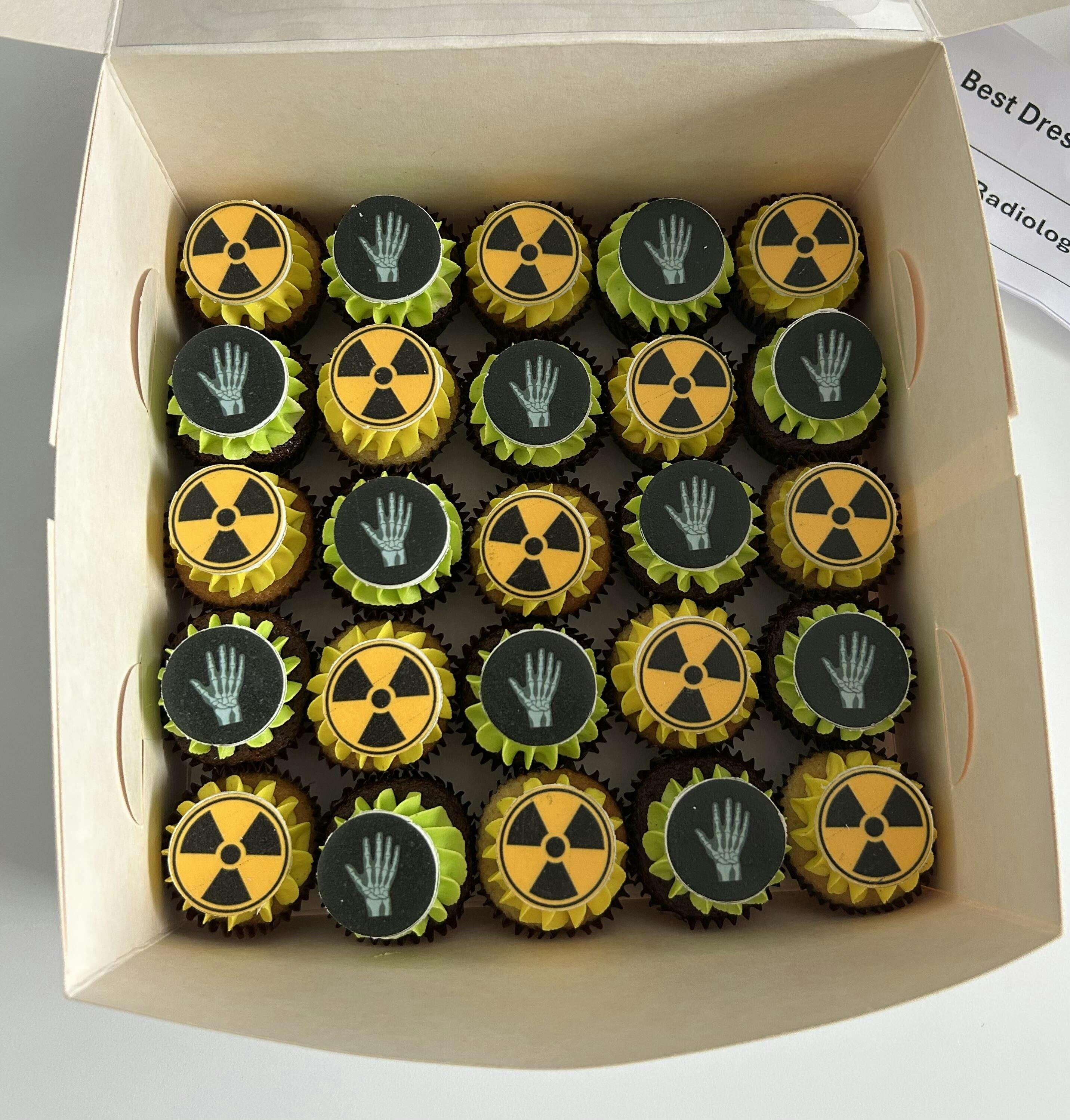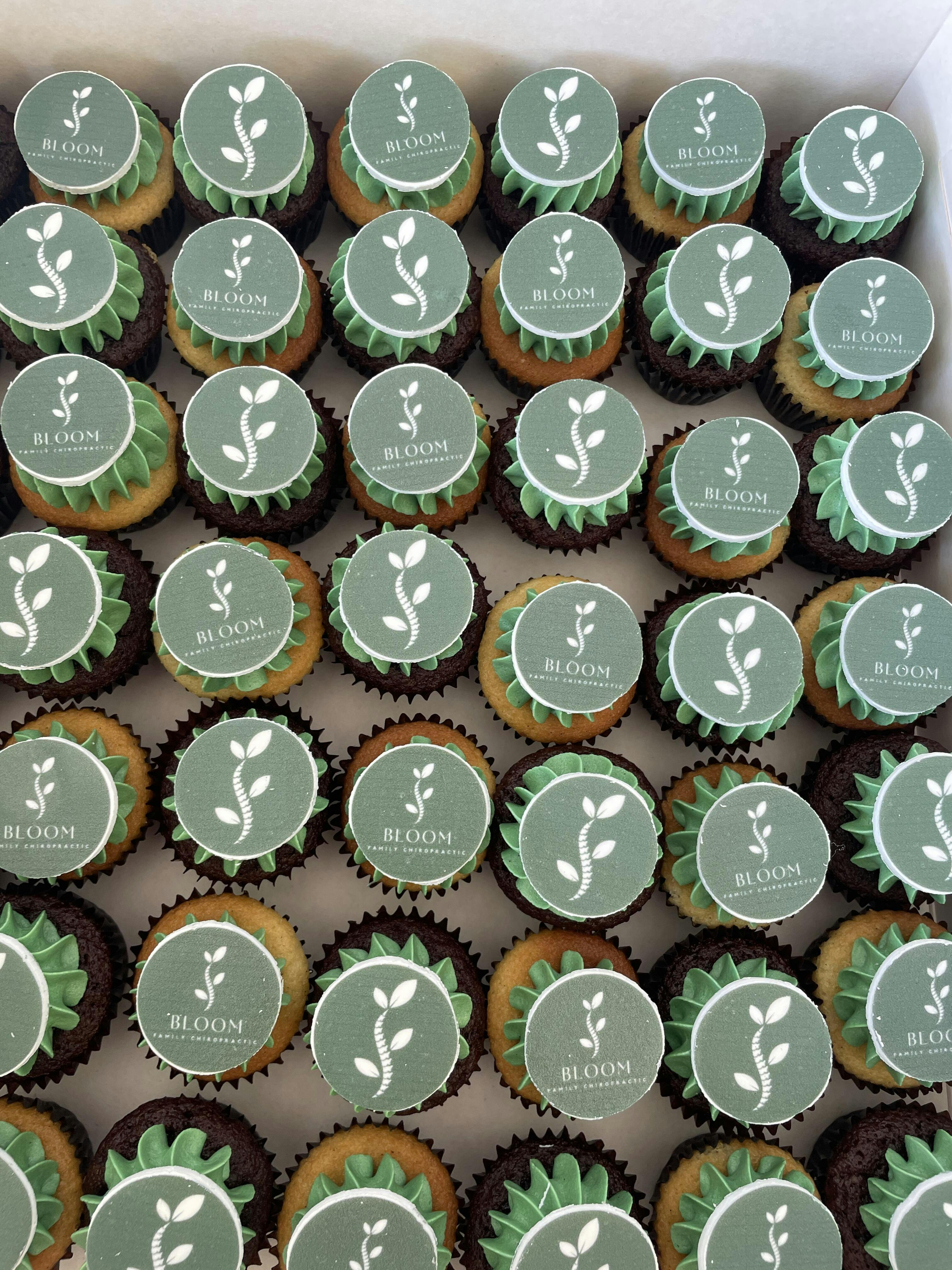 A 25-pack of mini cupcakes can have up to 2 different images & 2 colours of buttercream.