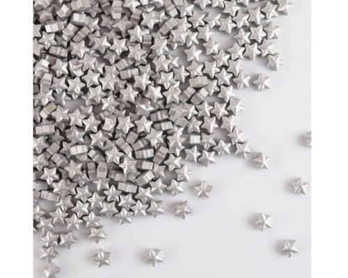 These silver star sprinkles add fun, sparkle, and sweetness to cakes, cupcakes, donuts, ice cream, and more.