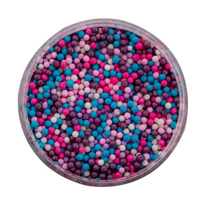 Bring joyful colour to your bakes with this playful mix of Bubble Me Happy Nonpareils by Sprinks!